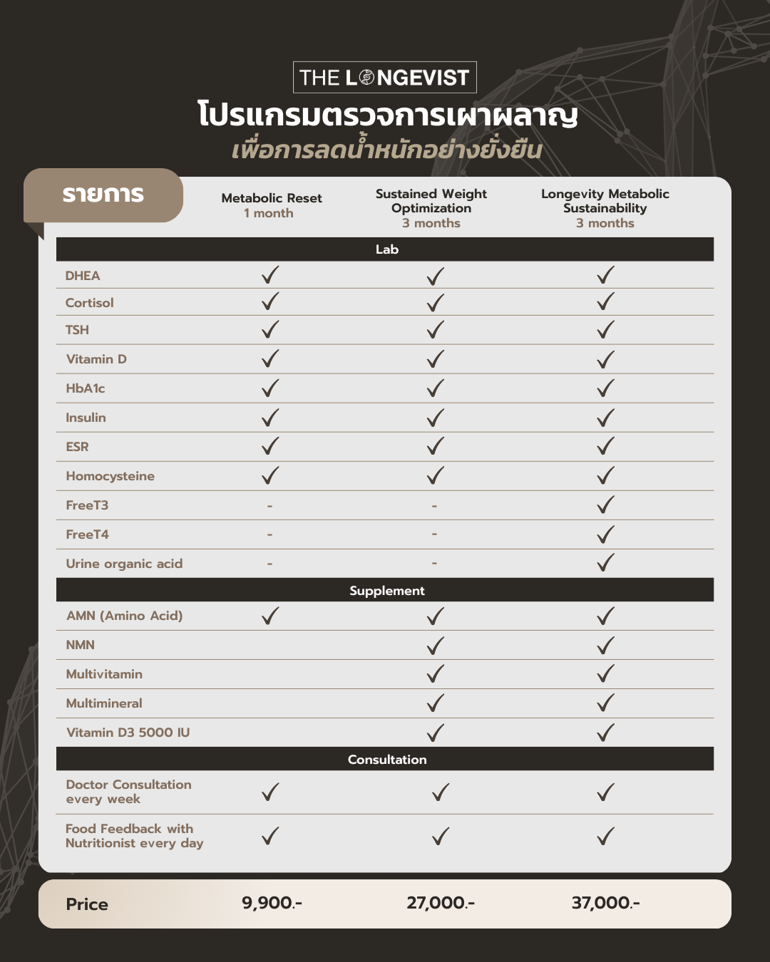 The Longevist Clinic มีโปรแกรมตรวจหลากหลายรูปแบบ