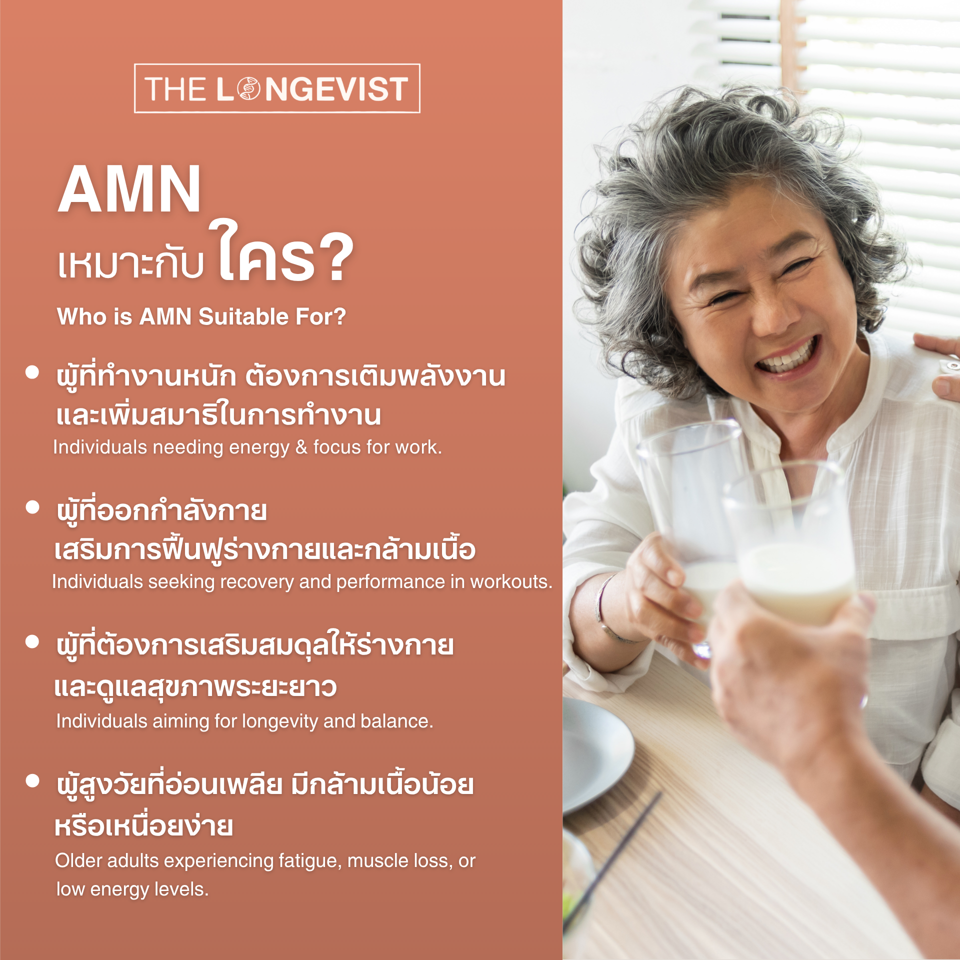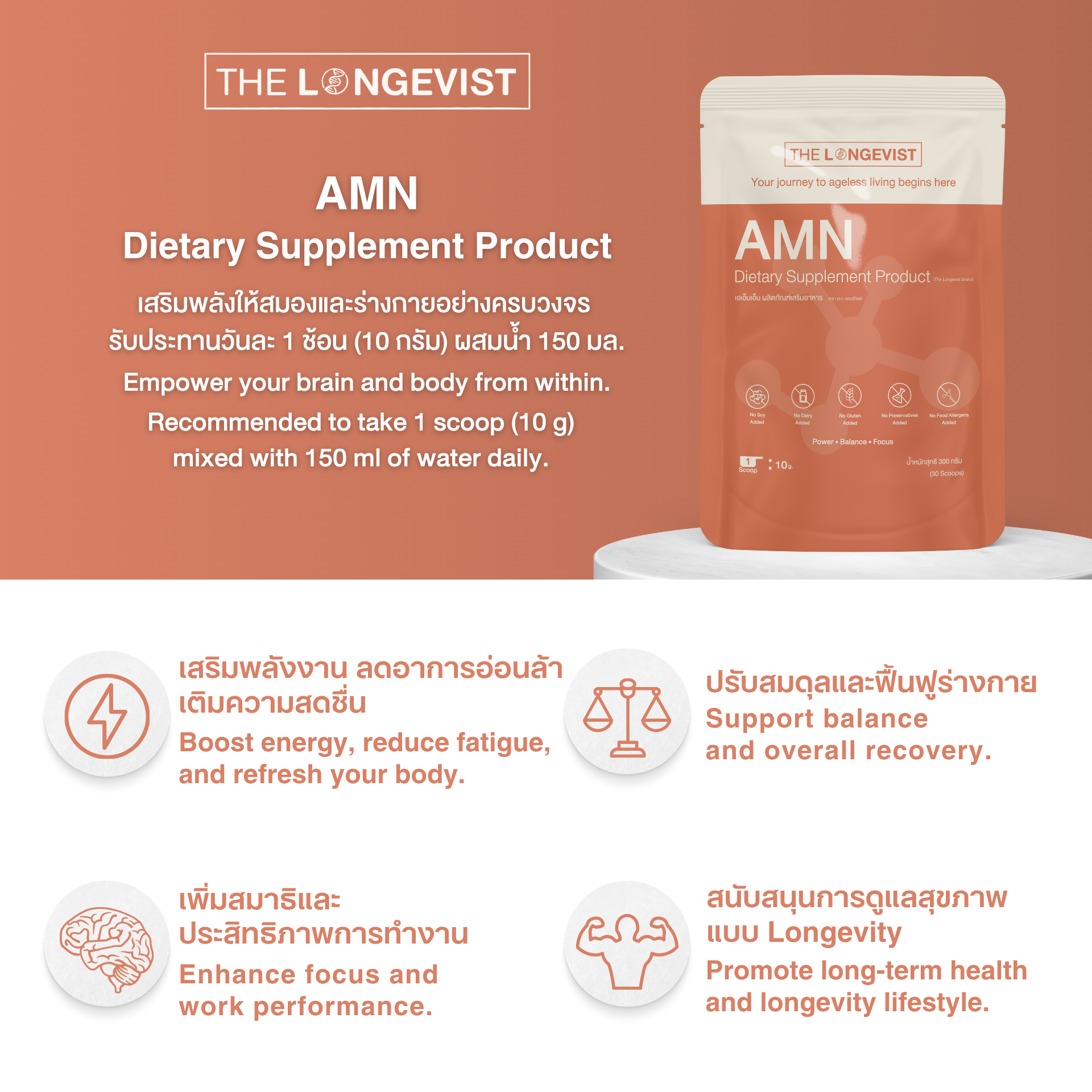 🧡 AMN — เติมพลังให้สมองและร่างกายอย่างครบวงจรAmino Acids for Longevity