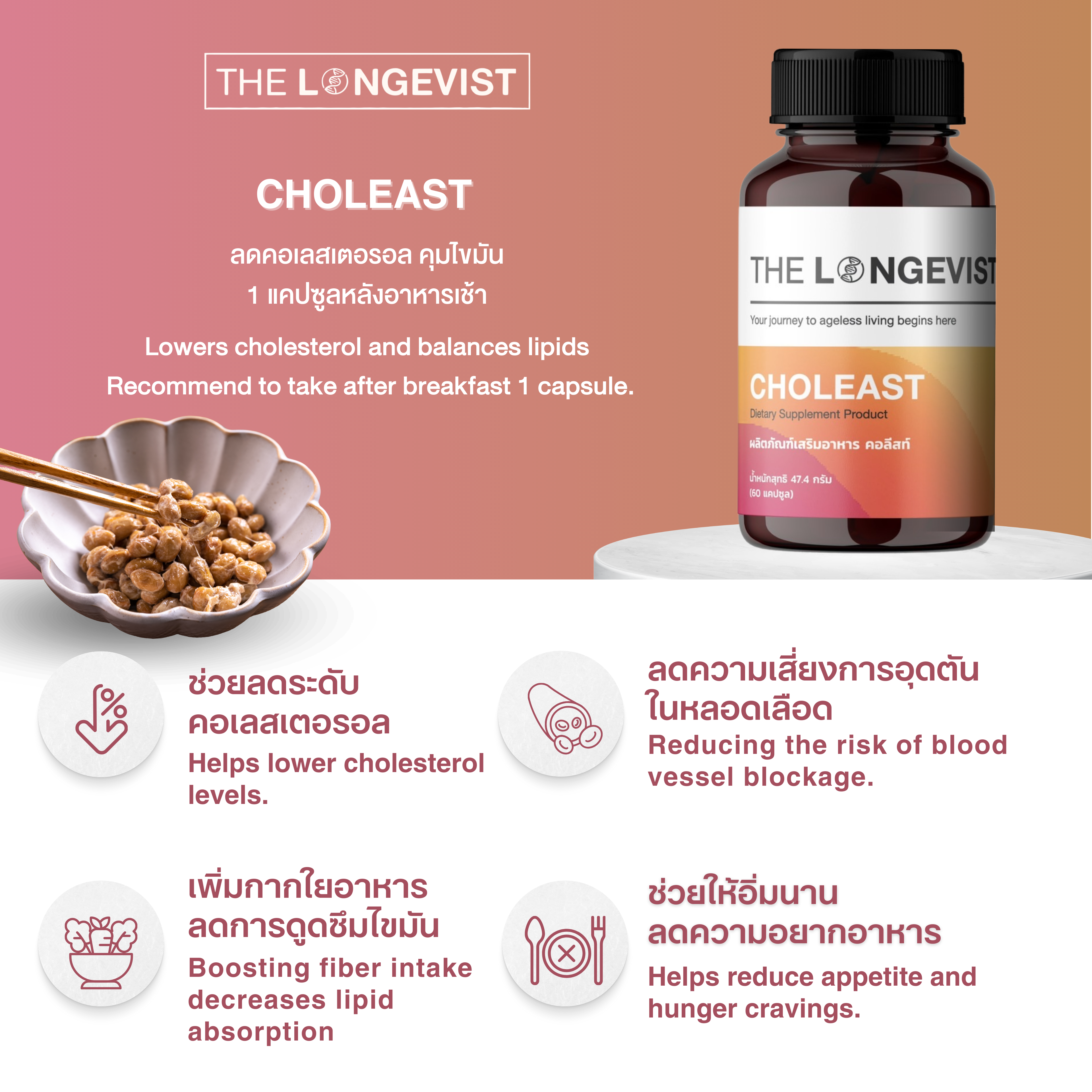 Choleast ผลิตภัณฑ์เสริมอาหารที่ช่วยลดระดับคอเลสเตอรอลและดูแลสุขภาพหัวใจอย่างตรงจุด ด้วยการผสานพลังจาก Red Yeast Rice, Nattokinase และไฟเบอร์ธรรมชาติอย่าง Psyllium Husk และ Konjac ช่วยลดไขมันไม่ดี (LDL), ส่งเสริมการไหลเวียนโลหิต และควบคุมน้ำหนักโดยไม่เพิ่มภาระให้ตับหรือไต